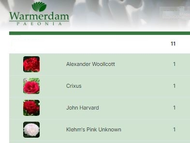 Замовили 11 новинок на Warmerdam Paeonia, NL. Очікуємо, що нашу колекцію Півоній поповнять наступні сорти: Alexander Woollcott, Crixus, John Harvard, Klehm's Pink Unknown, Mrs. Franklin D. Roosevelt, Red Satin, She's My Star, Ursa Major, Vesuvian, Viking Valor, Zemina.