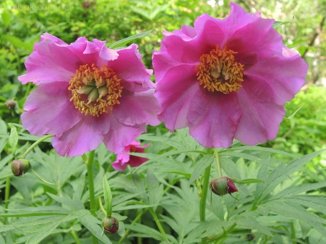 Новинка в колекції Півоній - Півонія незвичайна (Paeonia anomala). Життєва форма: трав'яниста. Походження: сорт - видова форма (ботанічний вид). Поширена в Північній і Центральній Азії. Бореальний лісо-лучний вид. Бічні бутони: відсутні. Діаметр квітки (Ф) та висота куща (Н): Ф=10см, Н=90см. Період цвітіння: ранній (Р).