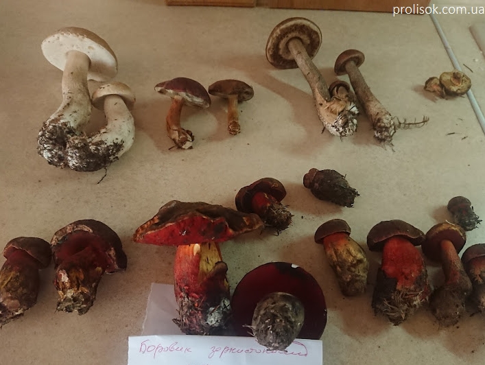 З родини Болетових зазвичай знаходили Боровик зернистоногий (Boletus erythropus = Neoboletus luridiformis). А ще припускаю - Моховик тріщинуватий (Xerocomus chrysenteron), Польський гриб (Boletus badius), Білий гриб (Boletus edulis). Також знайшли неїстівного двійника білого - Гірчак (Tylopilus felleus), який так само належить до родини Болетових (Boletaceae).