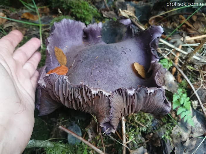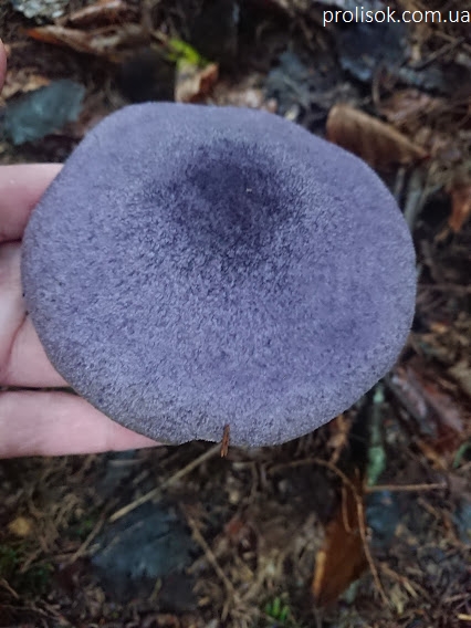 Забарвлення шапки темно-фіолетове. М'якоть у нього товста, злегка блакитнувата, м'яка.