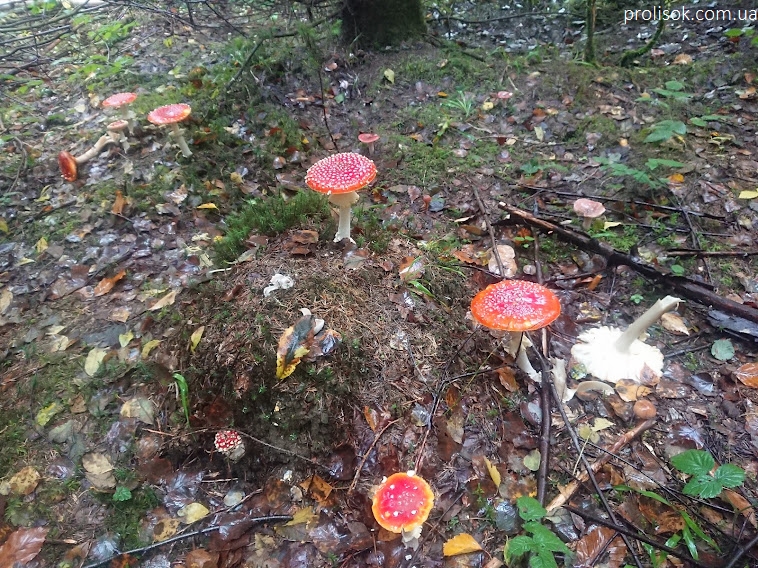 Мухомор червоний (Amanita muscaria) часто ріс групами. З вигляду дуже гарний, але отруйний гриб з родини Мухоморових (Amanitaceae).