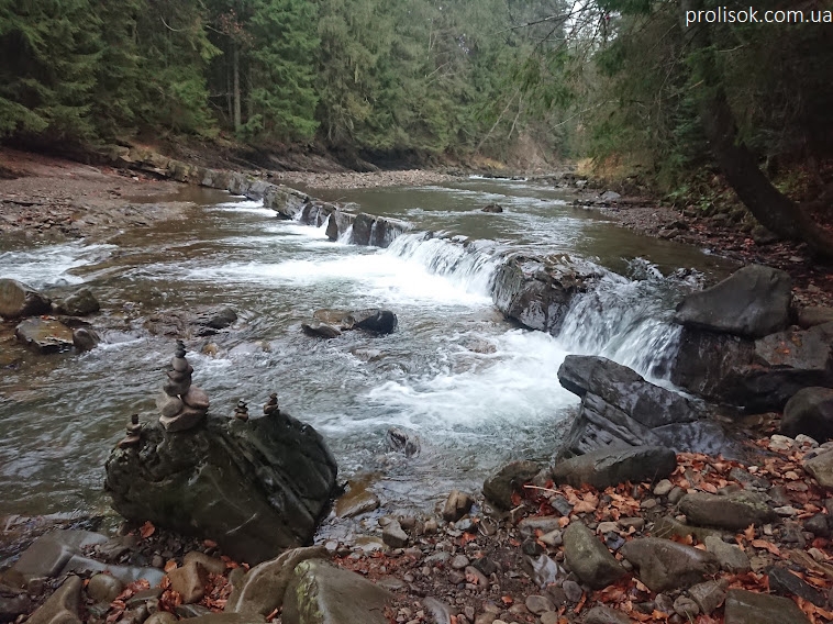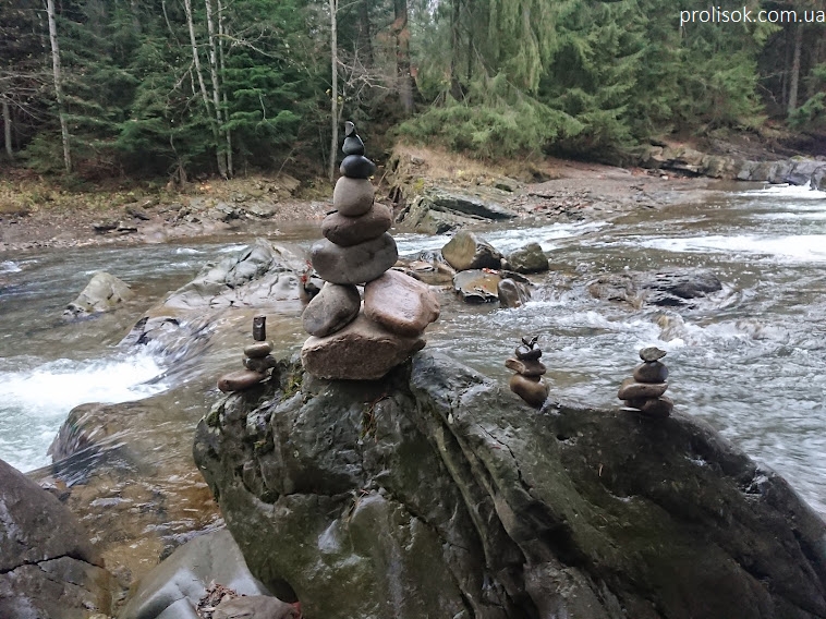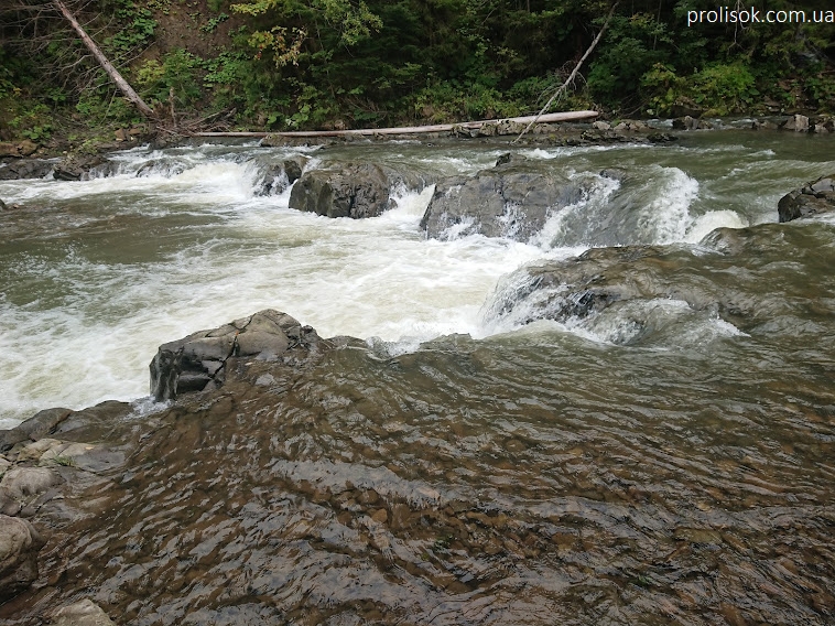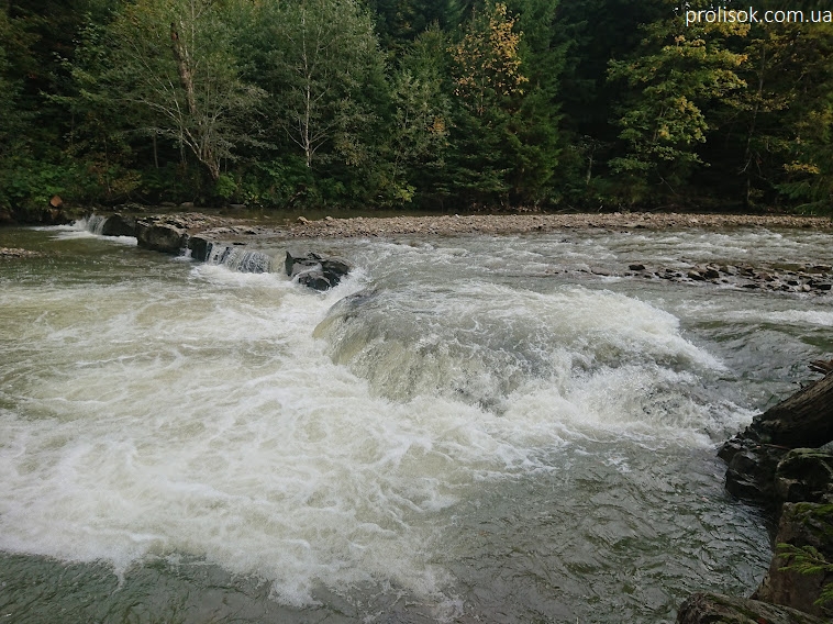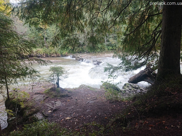 Зупинялись ми в чудовому куточку. Від дороги крутим схилом по стежинці можна спуститись до річки. На березі під високим деревом примостилося старе багаття з місцем для відпочинку. Довкола ростуть гриби: під ногами, попри стежинку, під деревами, на схилах, прямо під урвищем над річкою.