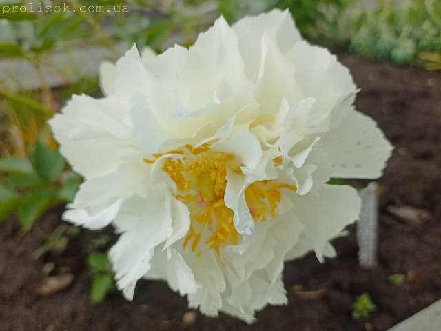 Новинка в колекції Півоній - Півонія "Грінленд" (Paeonia "Greenland"). Селекція: Pehrson, 1989, США. Життєва форма: трав'яниста. Походження: сорт - міжвидовий гібрид (P. hybrid "Sanctus" х P. hybrid "Silver Dawn" F3). Тетраплоїд. Діаметр квітки (Ф) та висота куща (Н): Ф=15см, Н=75см. Період цвітіння: ранній (Р).