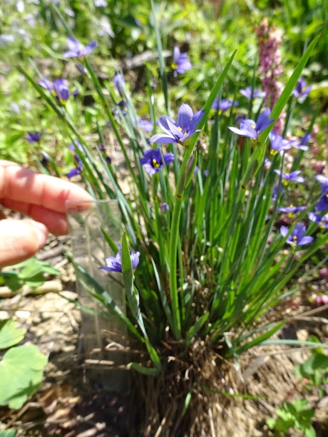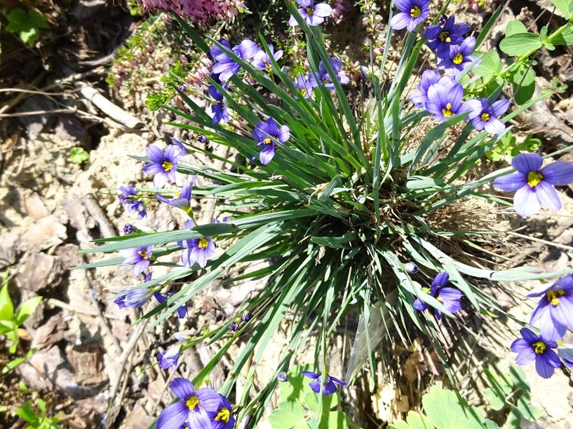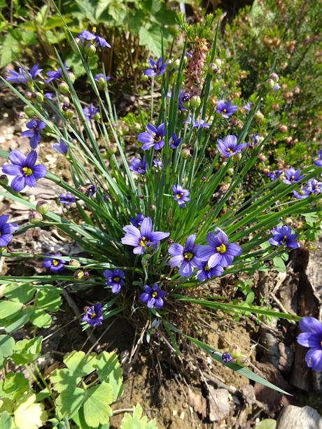 Новинка в асортименті кореневищних рослин - Сизюринхій! До Вашої уваги Сизюринхій гірський (Sisyrinchium montanum) - багаторічна трав'яниста рослина висотою 10-20 см. Листя плоске, лінійно-ланцетне, сизувато-зелене. Стебла однакової з листям висоти закінчуються пучками синьо-фіолетових квітів з жовтим центром 14-20 мм в діаметрі, по 1-6 в суцвітті. Темна ділянка під кожною квіткою - це "вузол", з якого відходить обгортка-покривало, як чохол, що покриває квітковий бутон, а потім піднімає і оточує квітку з одного боку, коли квітка відкривається. Квіти розкриваючись нагадують зірочки. Призначення рослини: для сонячних місць, для альпінаріїв, для бардюрів.