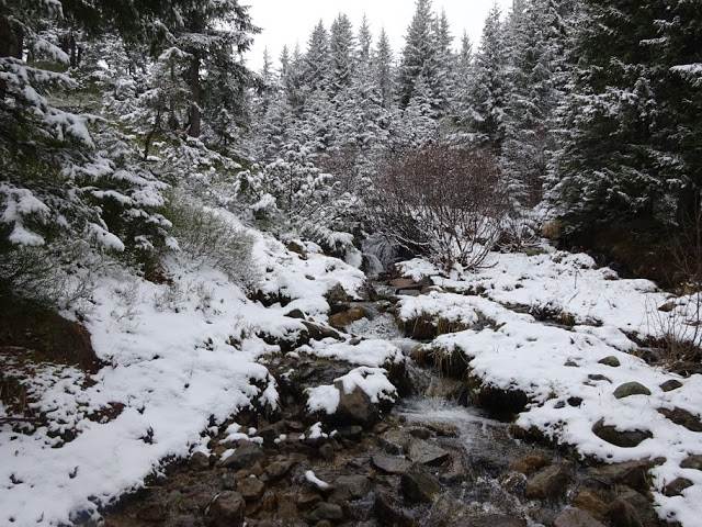 Ночью было ощущение дискомфорта ... холод в палатке ... и даже спальник не спасал ... Оказалось, что под утро выпал СНЕГ! От солнечной весны ничего не осталось ... ВОКРУГ СНЕГ. Вот такая переменная Черногора в мае:)!