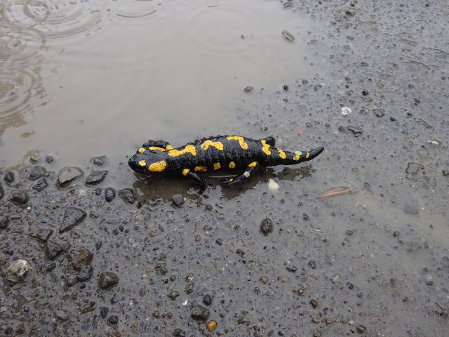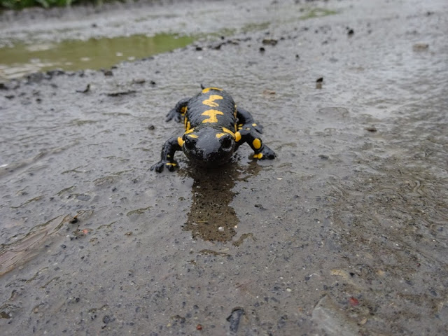 Вернулись в с. Лазещина, чтобы забрать авто и здесь с нами попрощалась местная саламандра пятнистая (Salamandra salamandra) :).