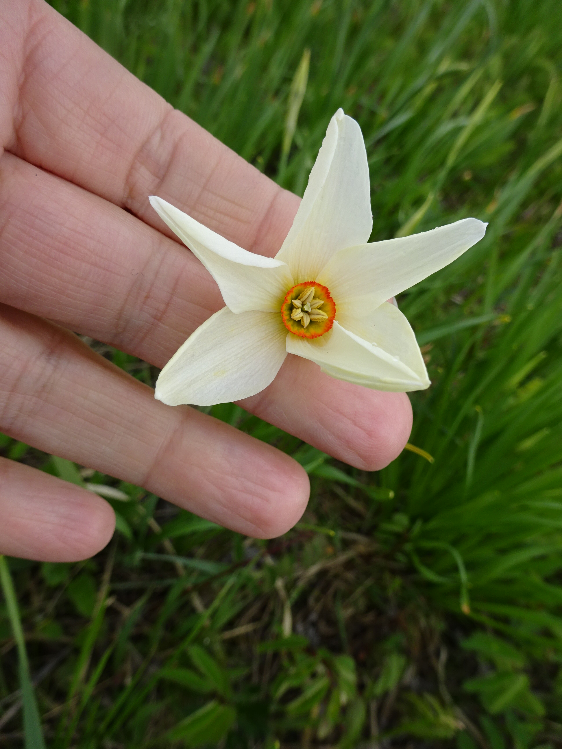 Приехали рано для цветения. Видим ... несколько стареньких дощатых подиумов смощенных для осмотра нарцисса узколистного, чтобы не топтали поляны ... Вокруг все зеленое! Если бы не стенды и таблички, то и не догадались, что вокруг есть такое реликтовое растение :)