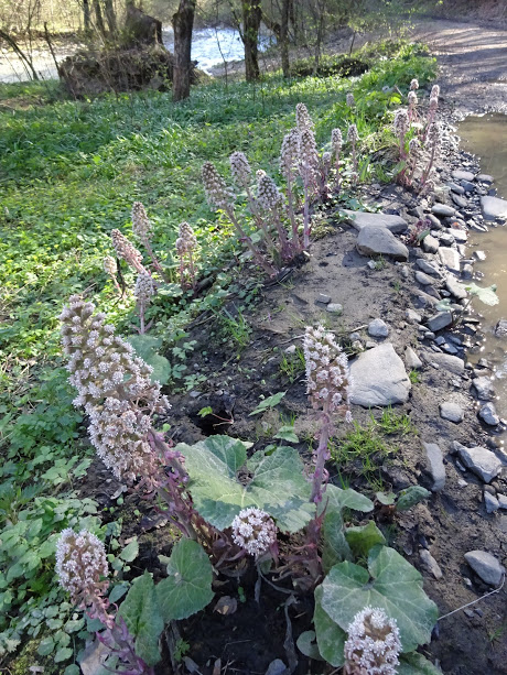 Белокопытник (Petasіtes) - вдоль реки и дороги.