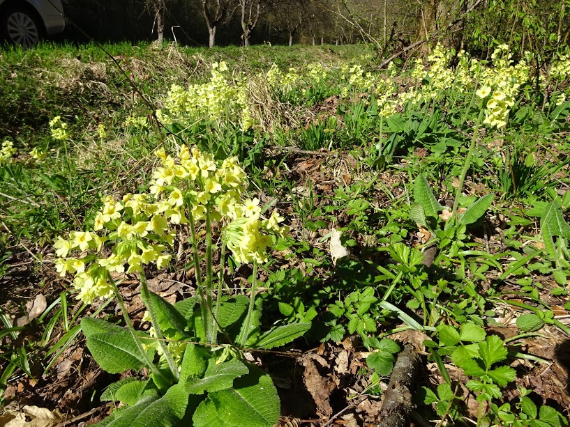 Наряду с анемонами и калюжницами ростет Первоцвет высокий (Primula elatior).
