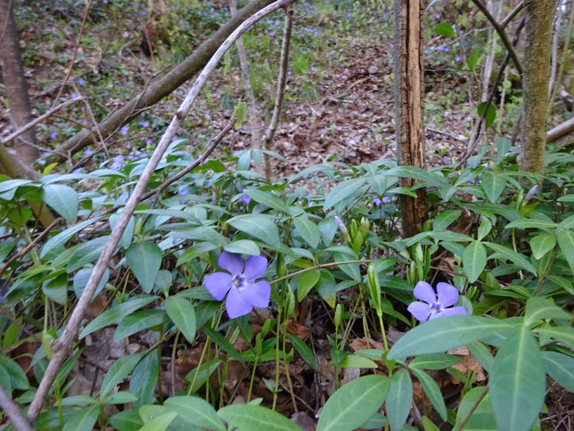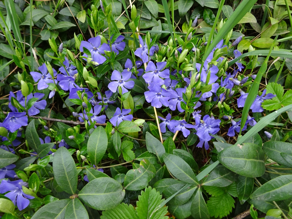 Возвращались с с. Черноголова. Появлялись первые сумерки. Вдоль дороги на склоне берега отдавало синевой - это Барвинок (Vinca).