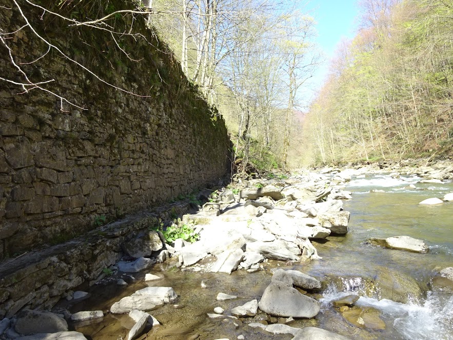 Берега вдоль реки высокие, из глыб огромного камня, иногда мощеные человеческими руками (неизвестно с какого времени), поросшие мхом, папоротниками ...