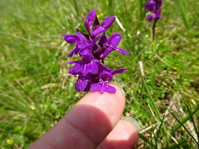 Возле маленьких ручейков, где над головой движется подъемник, видим пальчатокоренник майский (Dactylorhiza majalis).