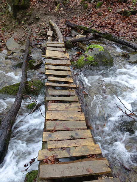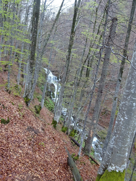 Обходим водопад Шипот и идем протоптанной тропинкой через поляны и ручьи, через буковый лес вверх в направлении Великого Верха.