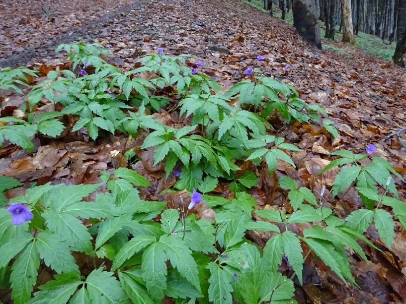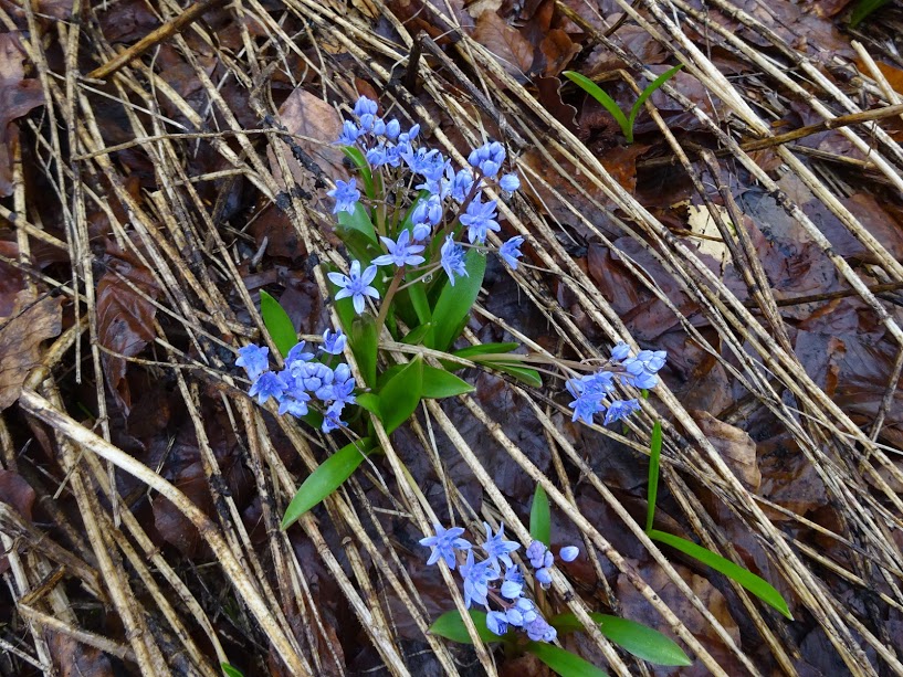 Ягодная плантация остается в стороне от солнечной поляны... и тут еще цветут первоцветы (в долине уже давно отцвели!): пролеска двулистая, первоцвет лекарственный, белоцвет весенний, зубяночка железистая.