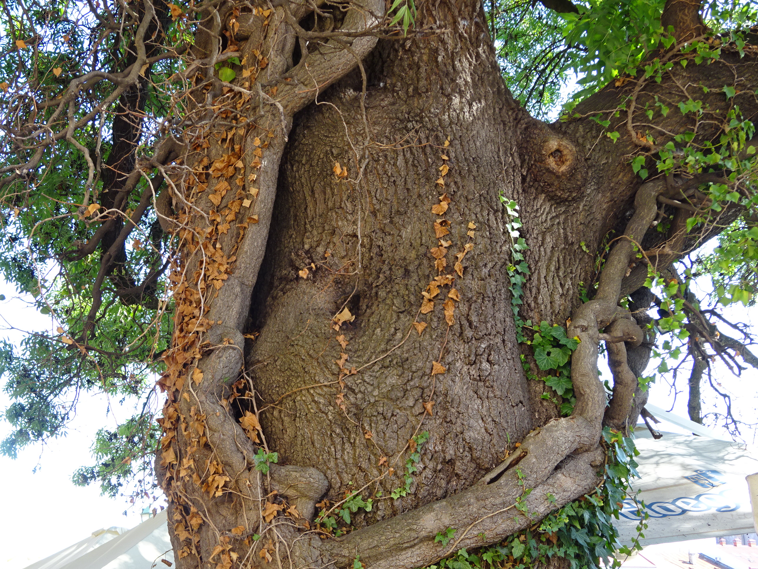 Старый ясень, крепко обвитый плющом. Дендролог Адальберт Ришко называет ложным распространенное предположение, мол, плющ вредит ясеню, фактически паразитирует на его стволе и ветвях. На самом деле плющ является лишь условным паразитом, то есть питается с помощью собственных корней, а не жизненными силами ясеня.
