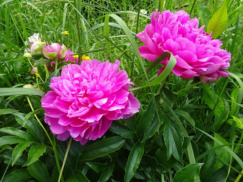 Для окраси саду підійдуть так звані універсальні сорти півоній, у яких компактні кущі, досить довгі стебла, яскрава палітра кольорів. Придатні всі сорти півонії молочноквіткової і багато видових півоній. Півонія молочноквіткова відзначається довголіттям, відносною невибагливістю і високою декоративністю куща з весни до осені.