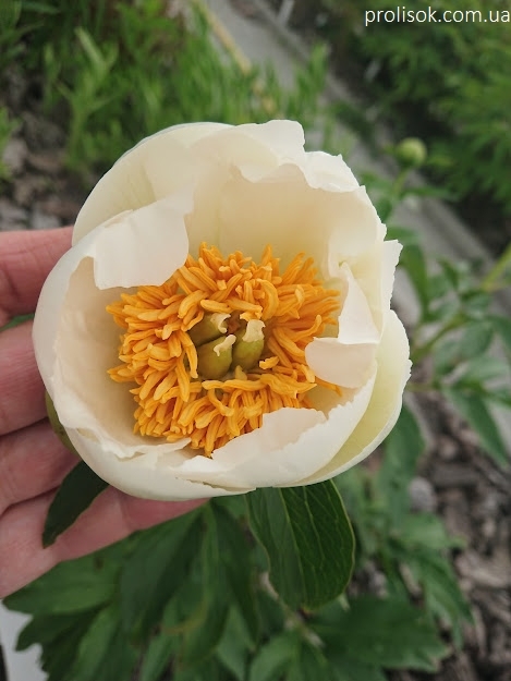 Півонія "Айворі Вайт Сосер" (Paeonia "Ivory White Saucer")