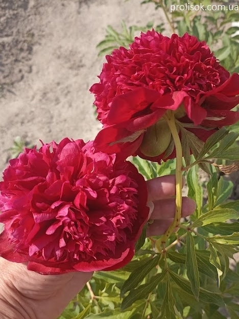Гібриди від півонії молочноквіткової і півонії тонколистої (P. tenuifolia) мають просту форму квітки насиченого червоного кольору, невеликі розміри куща, незвичайні дрібно розсічені листя. Цвітуть з початку червня.