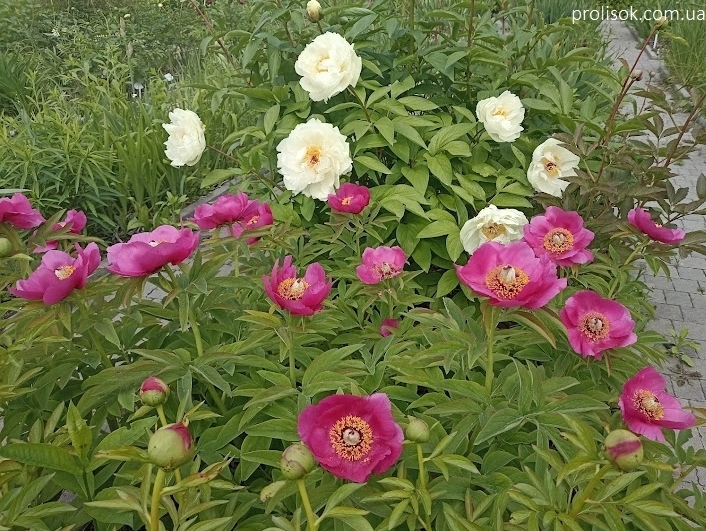 P.S. Півонія молочноквіткова (Paeonia lactiflora). Синонім - півонія білоквіткова (P. albiflora) частіше застосовується в зарубіжних публікаціях. Іноді в деяких каталогах і старих виданнях зустрічається синонім півонія китайська (P. Chinensis) - історична назва, що нагадує, що ці півонії потрапили в Європу з Китаю.