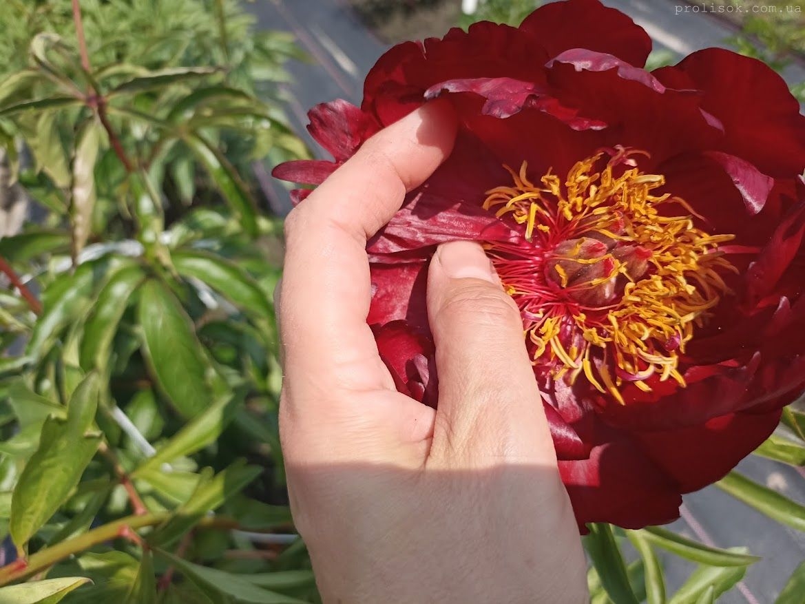 Гібриди від півонії молочноквіткової і півонії тонколистої (P. tenuifolia) мають просту форму квітки насиченого червоного кольору, невеликі розміри куща, незвичайні дрібно розсічені листя. Цвітуть з початку червня.