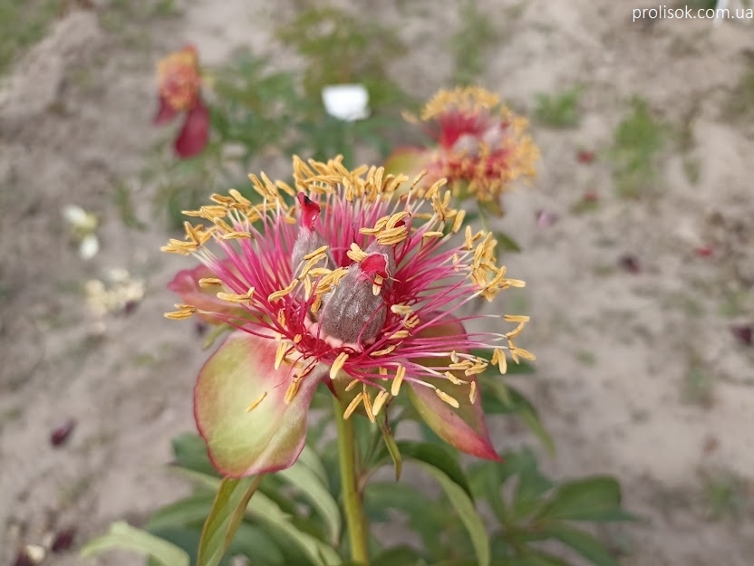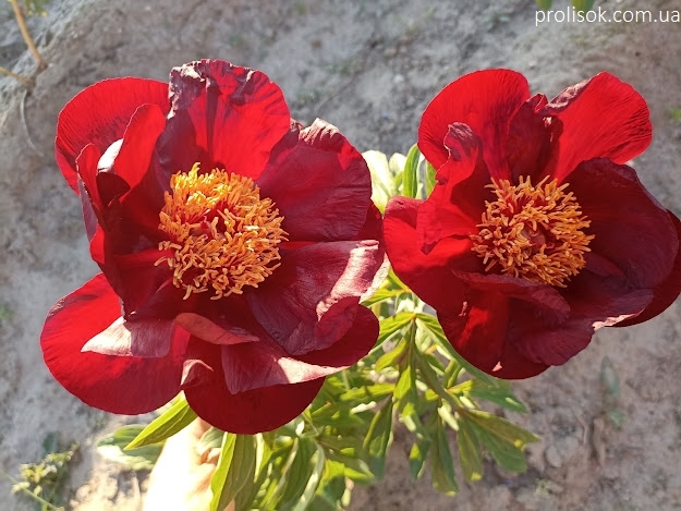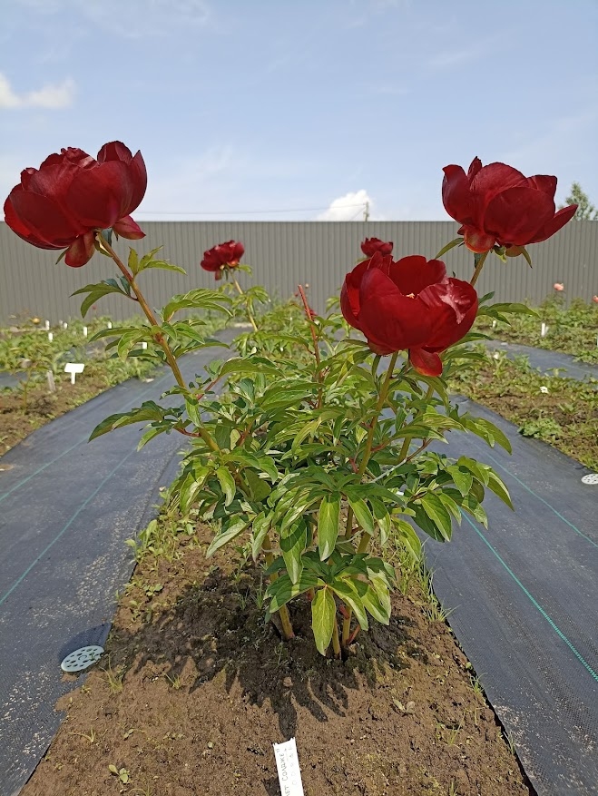 Гібриди від півонії молочноквіткової і півонії тонколистої (P. tenuifolia) мають просту форму квітки насиченого червоного кольору, невеликі розміри куща, незвичайні дрібно розсічені листя. Цвітуть з початку червня.