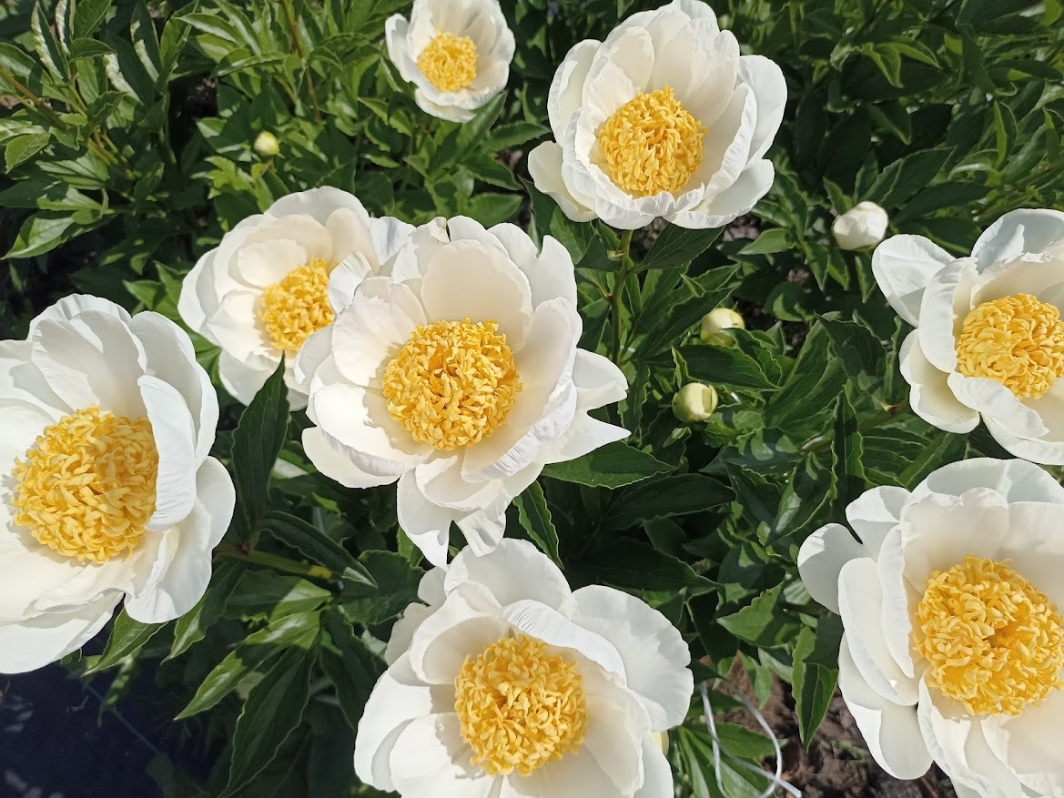 Гібриди від півонії молочноквіткової і кавказьких видів півоній відзначаються найбільш ранніми термінами цвітіння - з кінця травня. Квітки простої форми, від білих і кремово-жовтих до рожевих.