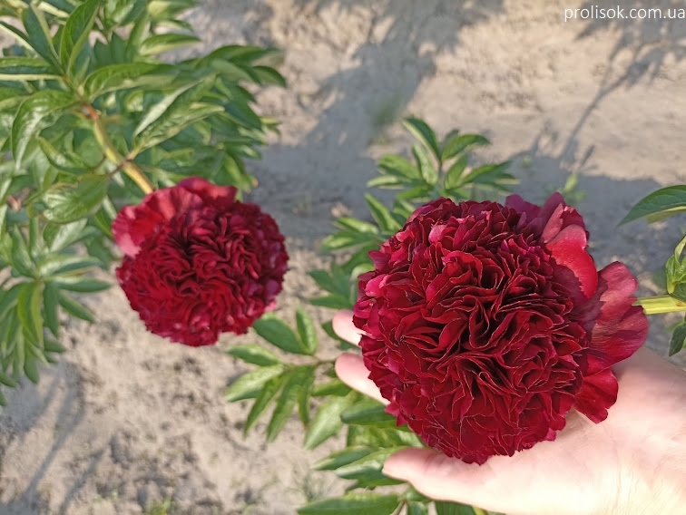 Гібриди від півонії молочноквіткової і півонії тонколистої (P. tenuifolia) мають просту форму квітки насиченого червоного кольору, невеликі розміри куща, незвичайні дрібно розсічені листя. Цвітуть з початку червня.