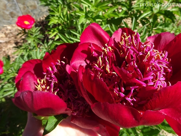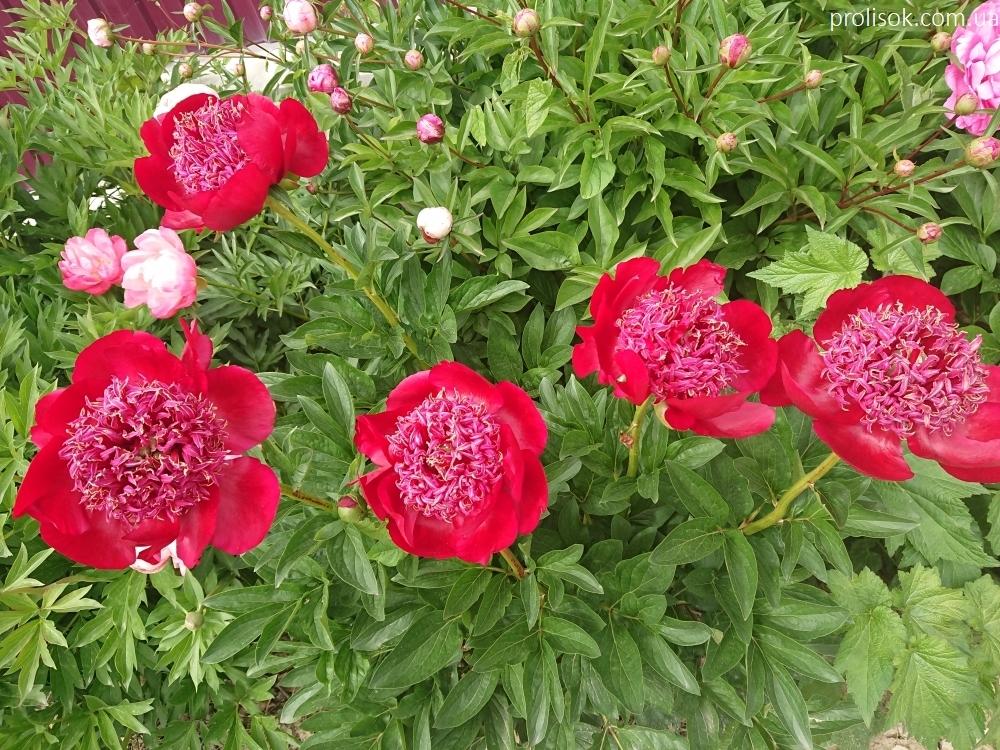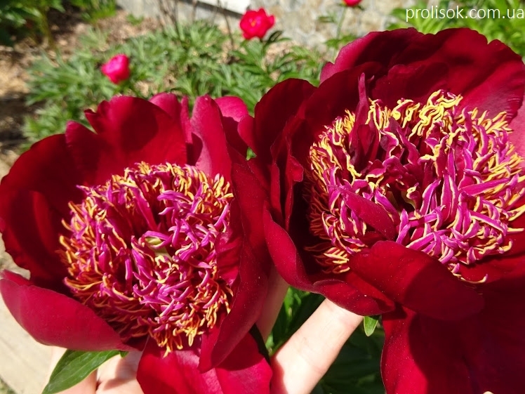 Гібриди від півонії молочноквіткової і півонії тонколистої (P. tenuifolia) мають просту форму квітки насиченого червоного кольору, невеликі розміри куща, незвичайні дрібно розсічені листя. Цвітуть з початку червня.